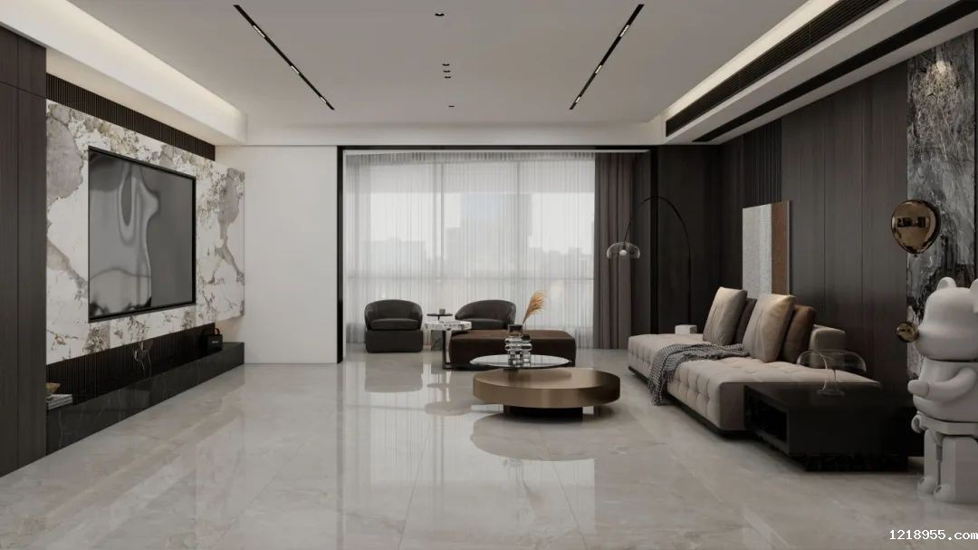 纹理穿引空间,呈现轻奢感