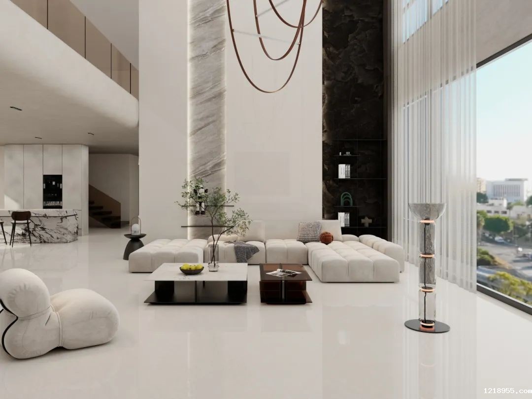 【云白】撷取云端纯净的白色,纹理细腻,光感透润,极致呈现自然原生大理石质感,为整个空间带来明亮舒适的视觉效果,密缝铺贴更显空间纵深感,营造一片通铺的壮阔效果。