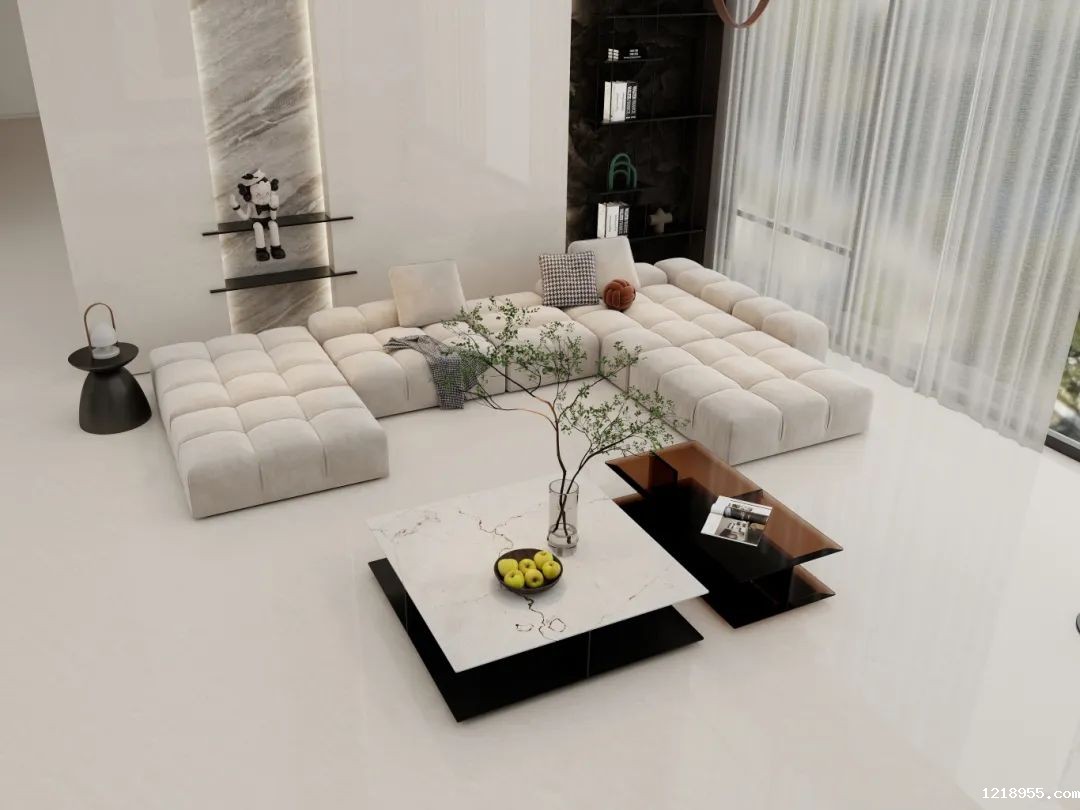 【霜喜】蕴含天然大理石的质朴硬朗,质感细腻柔和,现代设计感与浑然一体的搭配,勾勒出空间深度,带来极强的探索性,让居家也成为了一种乐趣。