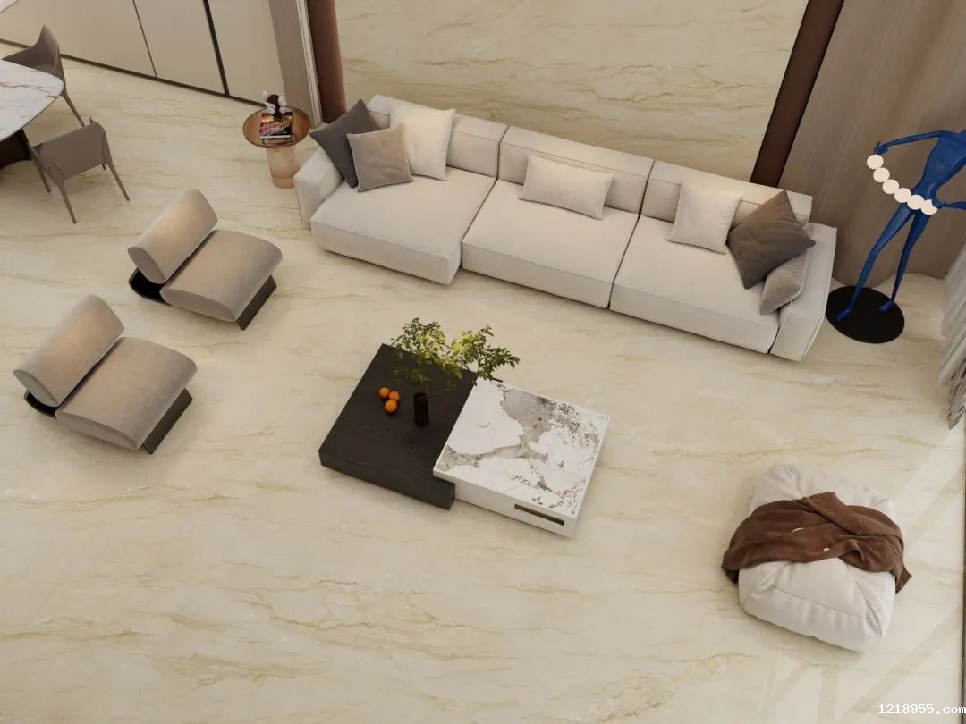 美观性--整体感更强更美观,真实还原石材图案和色彩,通透立体感强,密缝连纹通铺,无限延伸,让瓷砖连成一整片,纹理自然衔接,还原大自然壮阔的视觉魅力,视觉体验更自然、更逼真。